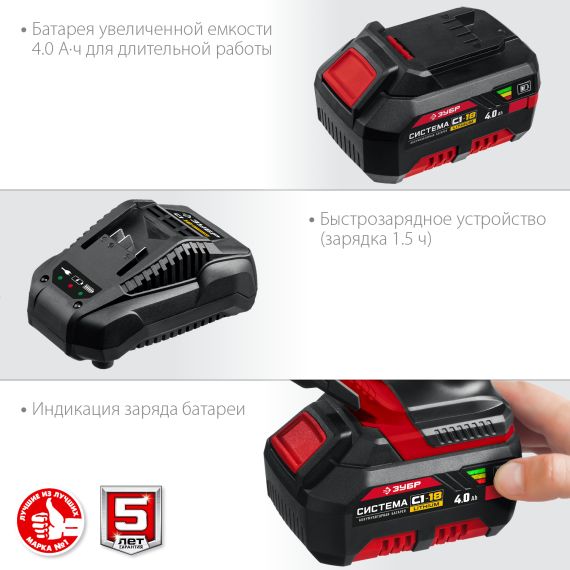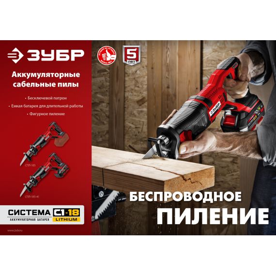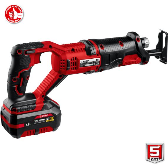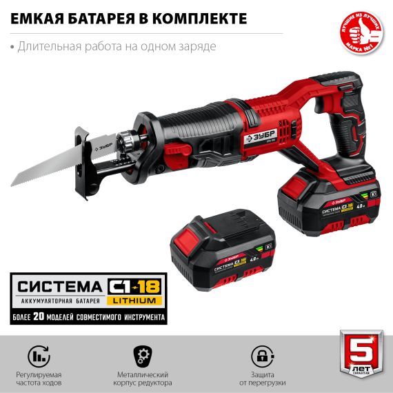 Пила сабельная ЗУБР С1-18, 18 В, 180 мм, 1 АКБ (4 А·ч), (СПЛ-185-41)