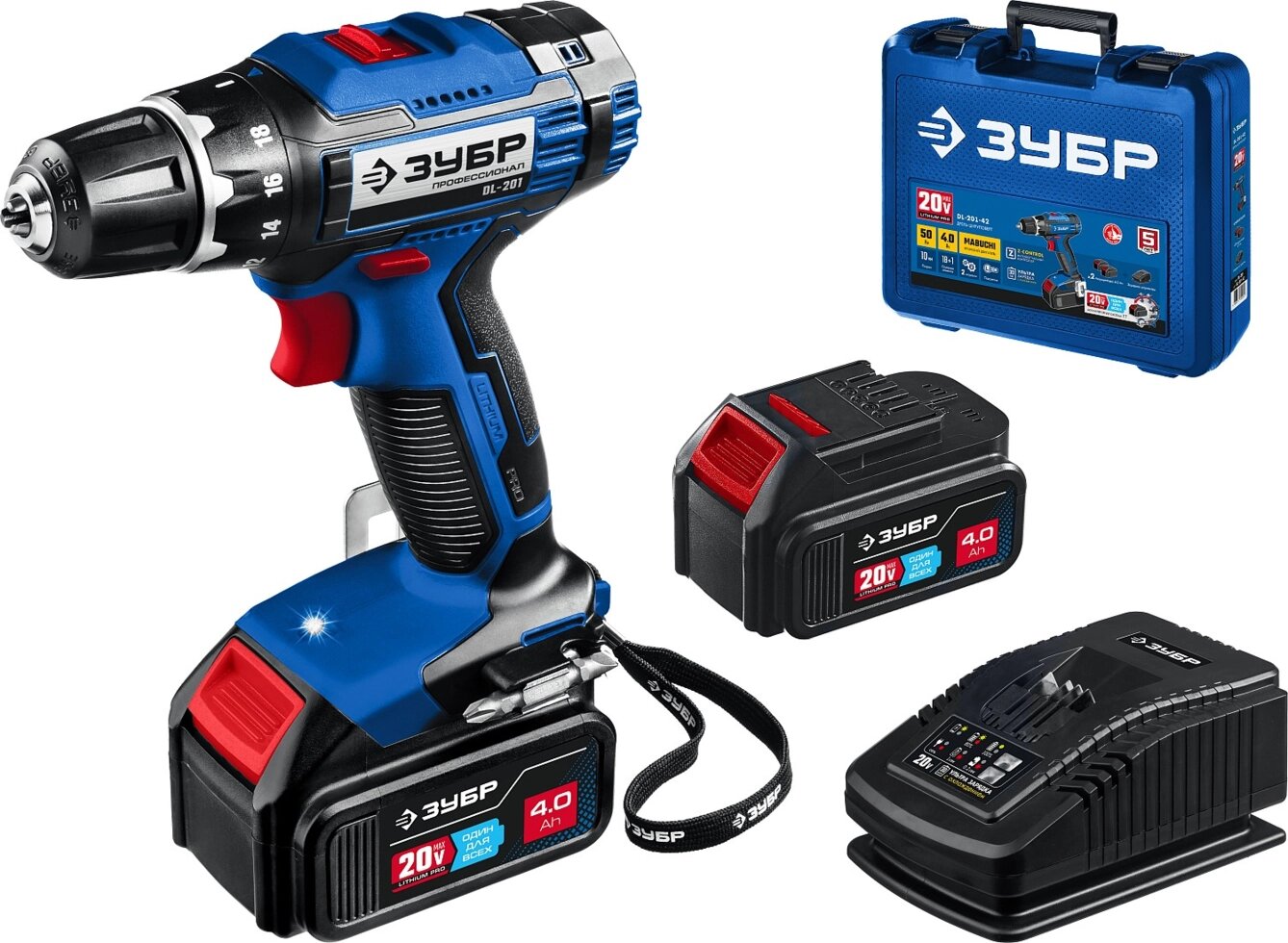 Дрель-шуруповерт Зубр Профессионал Т7, 20 В, 50 Н·м, 2 АКБ (4 А·ч), кейс, Профессионал (DL-201-42)