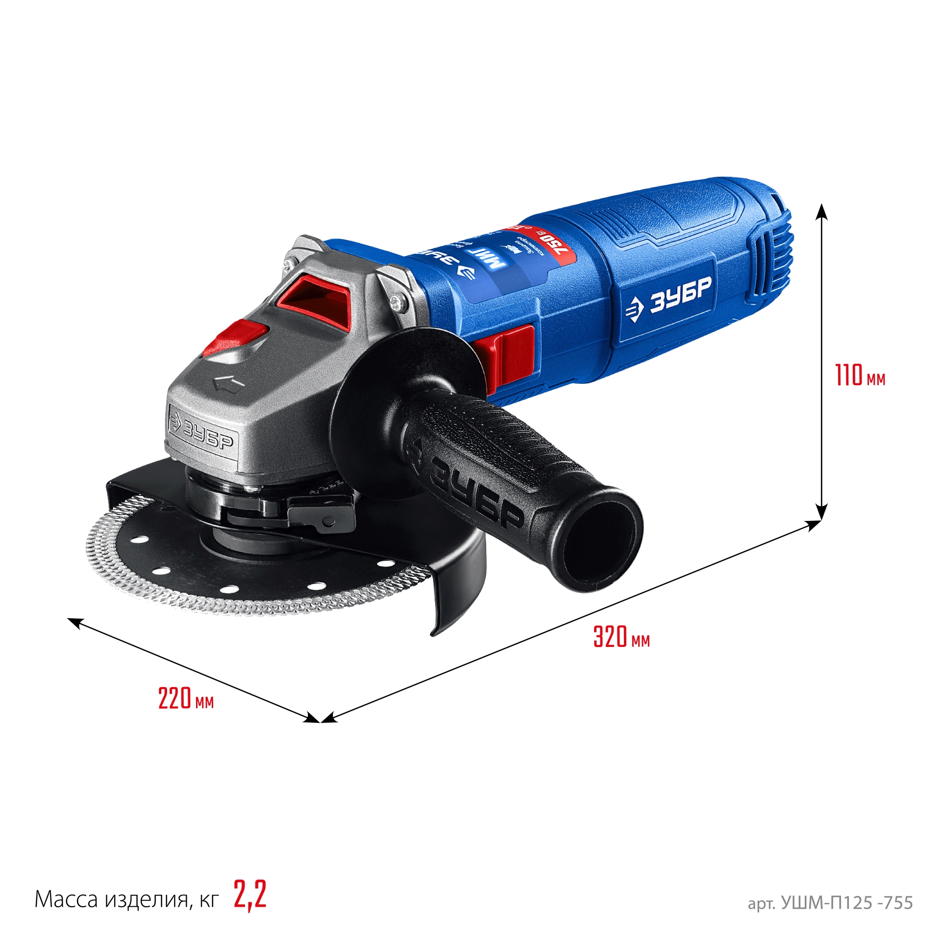 УШМ 750 Вт, d125 мм, Зубр Компакт Профессионал (УШМ-П125-755)