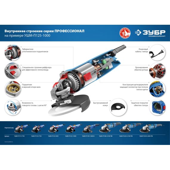 На электроинструменты и бензотехнику «ЗУБР» действует расширенная 5-летняя гарантия. Служба качества контролирует процесс производства на каждом этапе.