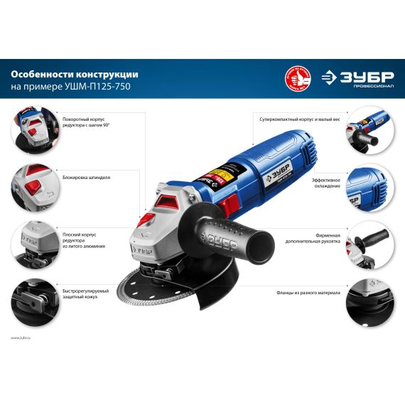УШМ 750 Вт, d125 мм, Зубр Компакт Профессионал (УШМ-П125-750)