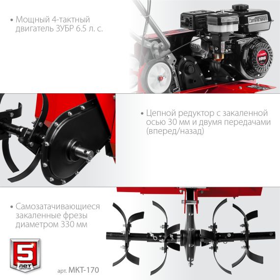 Мотокультиватор Зубр 6.5 л.с., (МКТ-170)