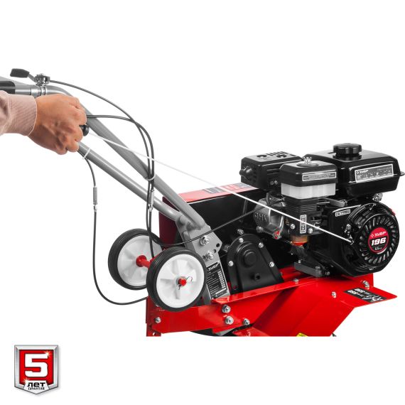 Рукоять культиватора с возможностью регулировки по вертикали делает управление более комфортным